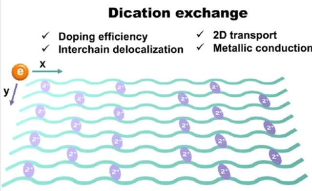 Title: Two-Dimensional Electron Transport in N-Type Conducting Polymers by Dication Exchange